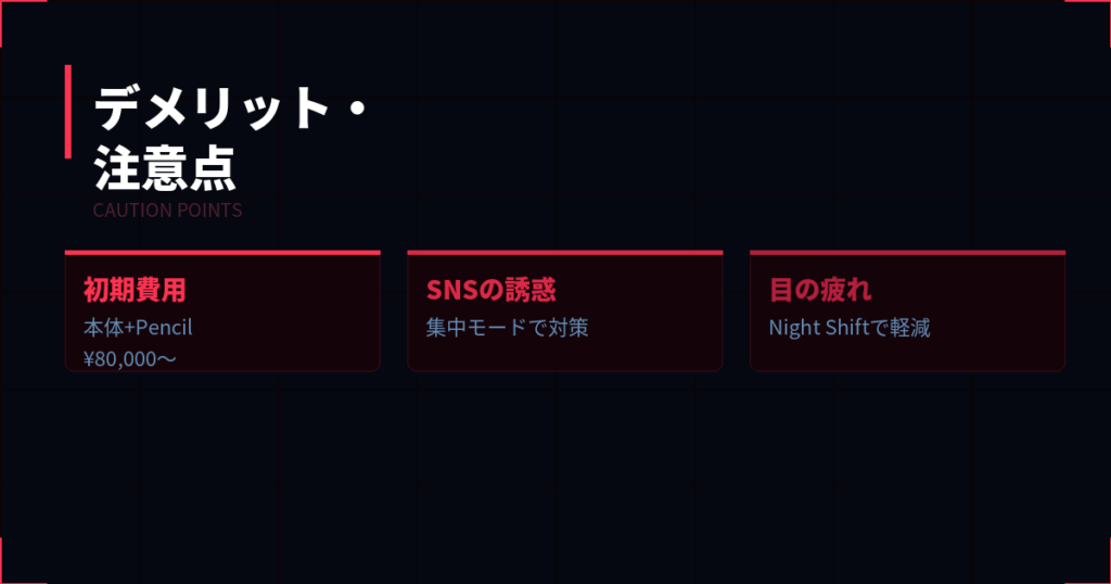 ・初期費用がかかる:iPad本体+Apple Pencilで最低でも8万円程度