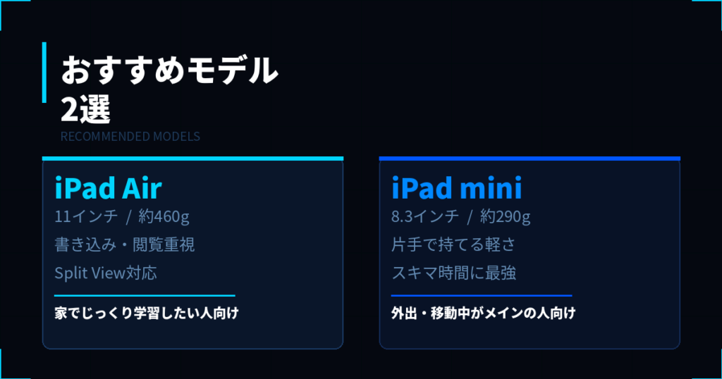 ・おすすめモデルはiPad AirかiPad miniの2択