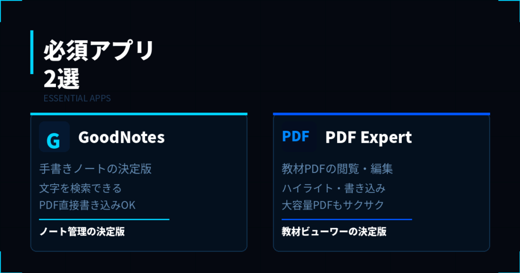 ・必須アプリはGoodNotesとPDF Expertの2つ