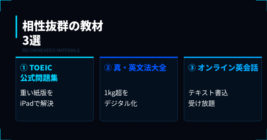 ・TOEIC公式問題集・真英文法大全・オンライン英会話との相性が抜群