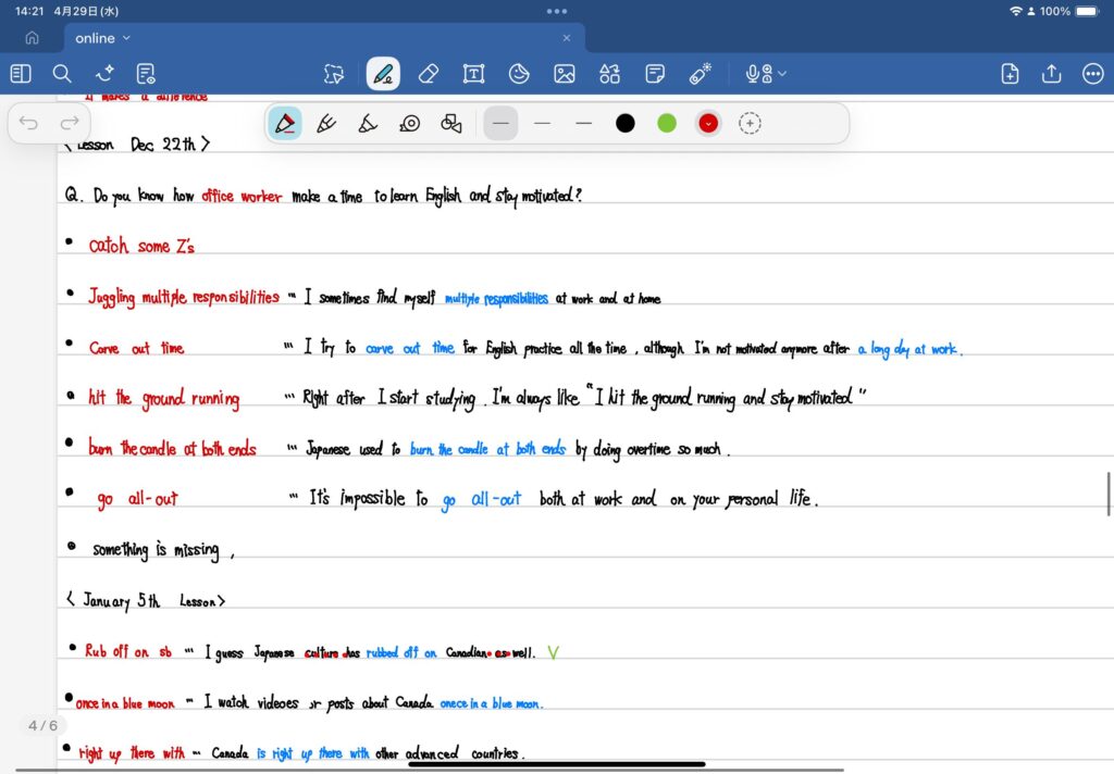 iPad英語学習の最大のメリットと言っても過言ではないのが、PDFへの直接書き込みです。