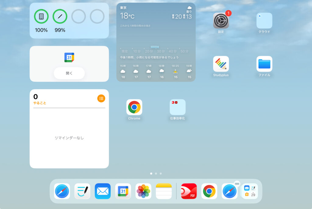 iPadのホーム画面1ページ目には、GoodNotes・PDF Expert・辞書アプリ・オンライン英会話アプリなど学習用アプリだけを配置しましょう。